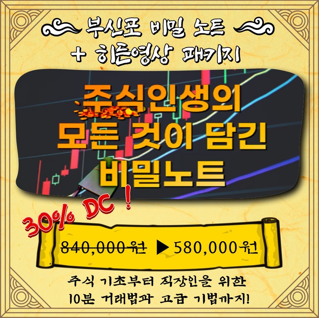 ※ 비밀노트 + 부의신호 영상강의 패키지 상품 안내 ※1] 부의신호 영상강의 단품 판매는 45만원비밀노트 단품 판매는 39만원[평생 업데이트]2] 패키지 할인 이벤트 = 비밀노트(39만원) + 그 외 저작물 3개 + 영상강의(40만원) = 84만원 -30%할인 = 58만원3] 구매 방법 = 입금 후 저작물 및 영상강의 수강 링크 발송 농협 352-2022-4311-13 |
